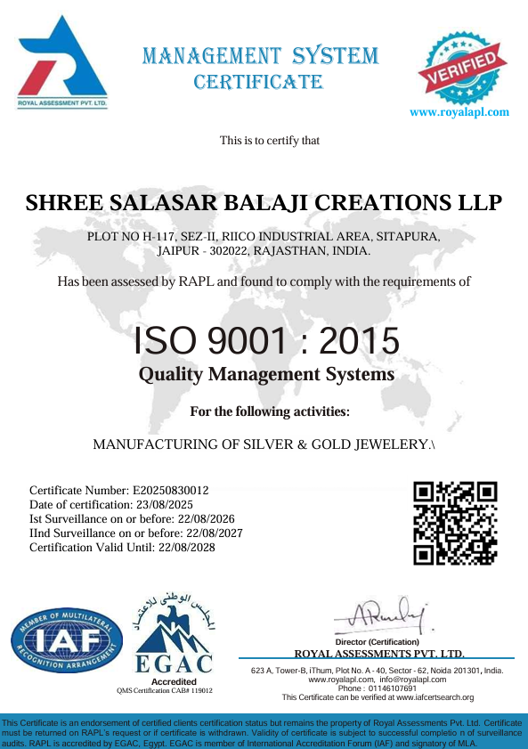 At Shree Salasar Balaji Creations, we believe jewelry is more than adornment; it is a timeless expression of artistry and heritage. As a distinguished name in jewelry manufacturing, we blend tradition with innovation to create pieces that captivate and inspire.